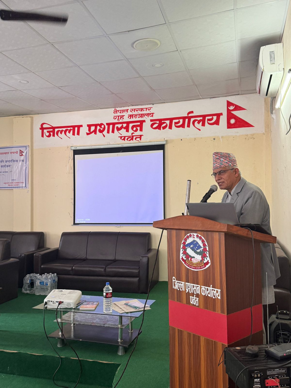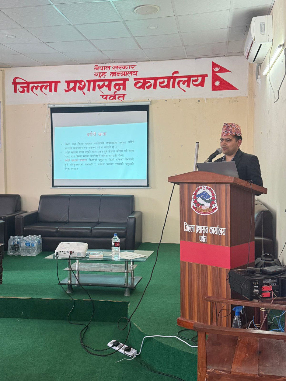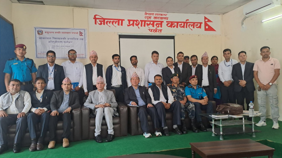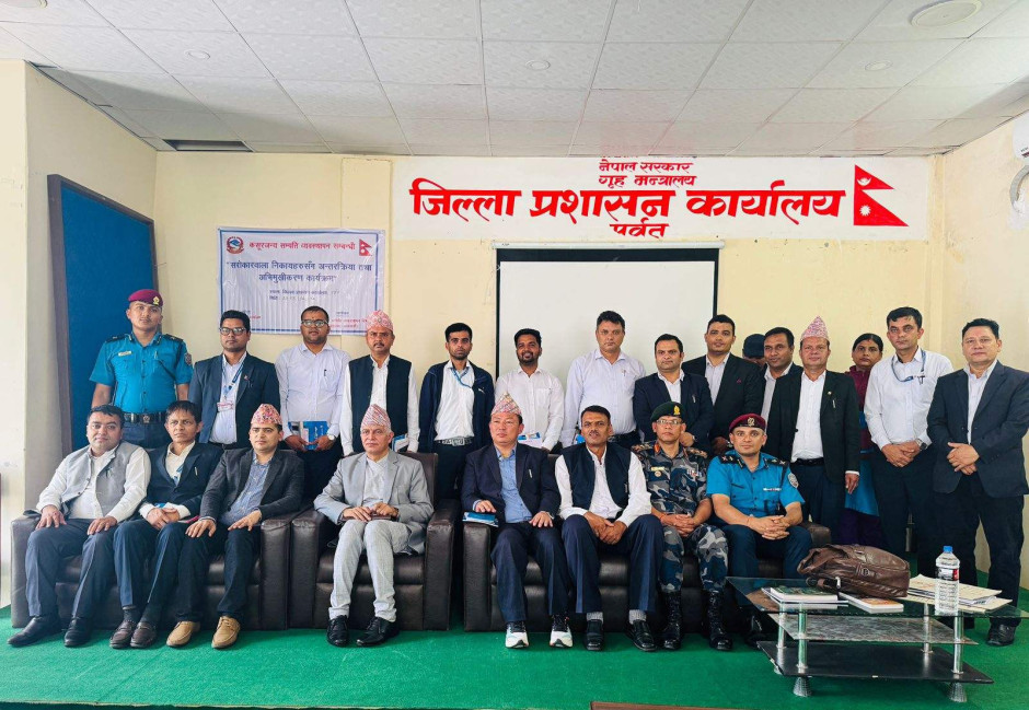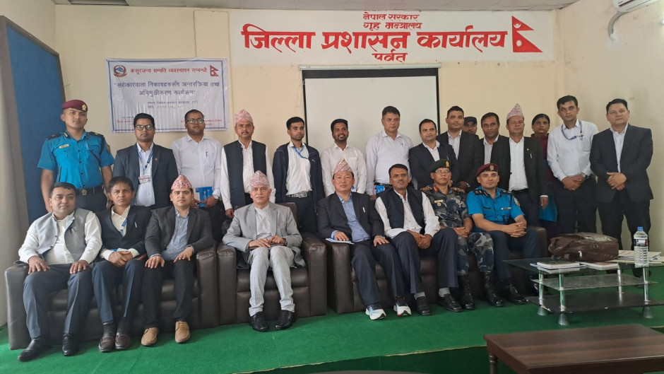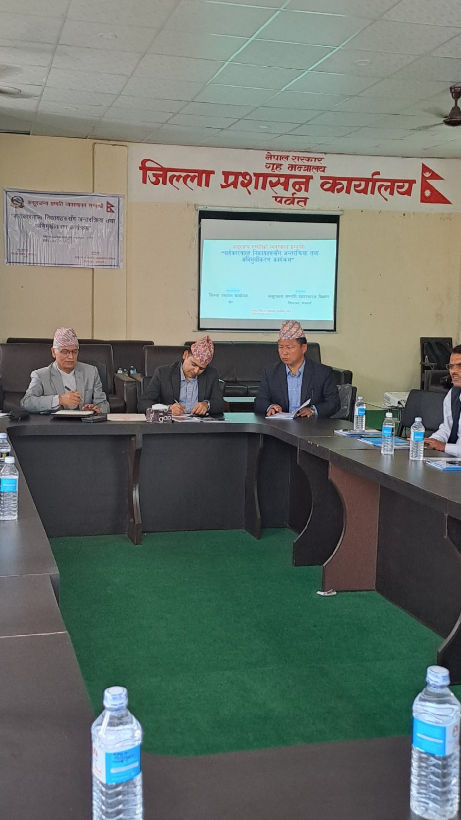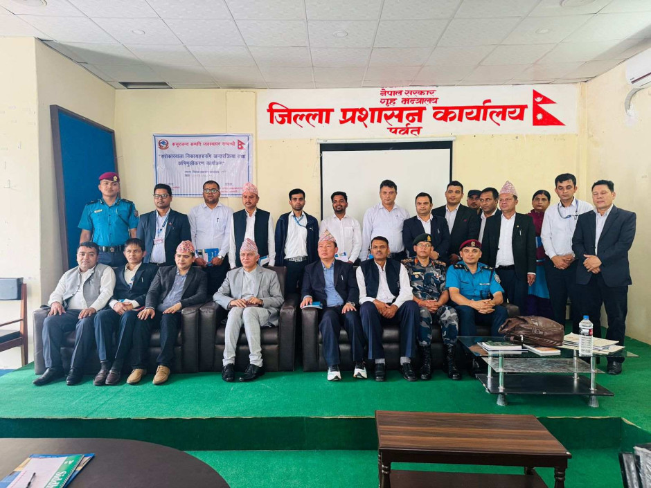 कसूरजन्य सम्पत्तिको व्यवस्थापन संबन्धमा जिल्लामा रहेका सरोकारवाला निकायहरुसँगको अन्तरक्रिया तथा अभिमुखिकरण कार्यक्रम पर्वत २०८२ ज्येष्ठ