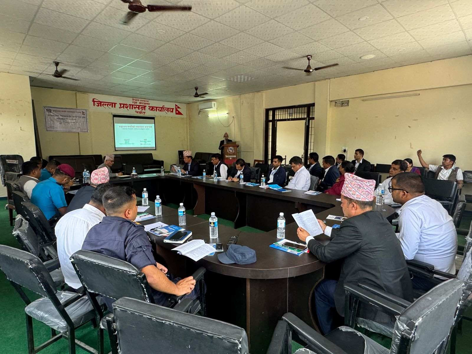कसूरजन्य सम्पत्तिको व्यवस्थापन संबन्धमा जिल्लामा रहेका सरोकारवाला निकायहरुसँगको अन्तरक्रिया तथा अभिमुखिकरण कार्यक्रम पर्वत २०८२ ज्येष्ठ