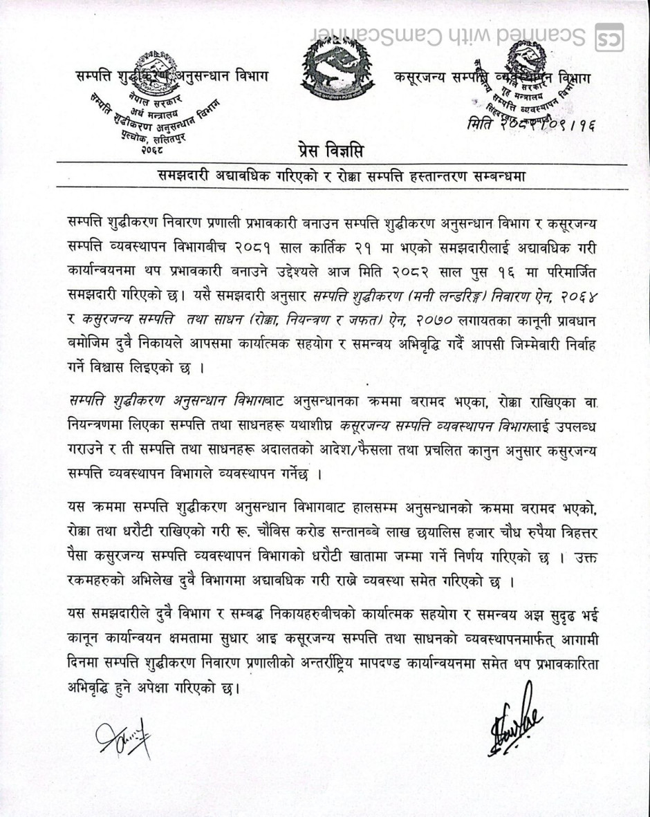 © सर्वाधिकार सुरक्षित कसूरजन्य सम्पत्ति व्यवस्थापन विभाग